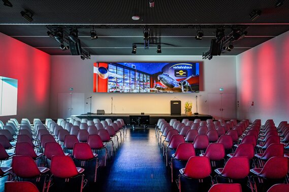 Das Auditorium strahlt mit dem Originalwandbild «panta rhei» Ruhe und Inspiration aus - ideal für anregende Präsentationen, Vorträge und Veranstaltungen.