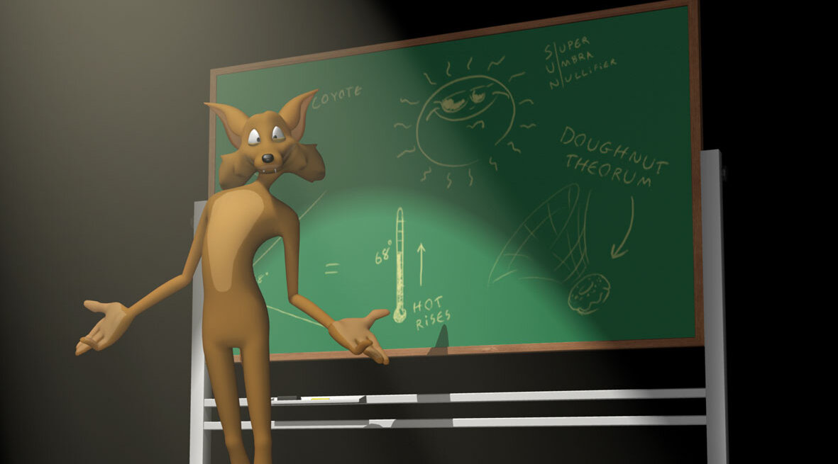 Questo spettacolo animato, sviluppato appositamente per i bambini, esplora la relazione tra la terra, la luna e il sole con l'aiuto di "Coyote", un divertente personaggio dei cartoni animati. La sua confusione fa riflettere il pubblico sull'interazione del nostro pianeta con la luna e il sole. Con l'aiuto di emozionanti storie dei nativi americani, il divertente coyote spiega le basi più importanti dell'astronomia.